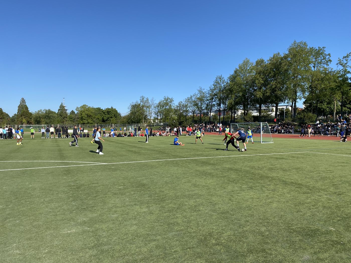 Sportlich aktiv startete die Schülerschaft des Walter-Eucken-Gymnasiums in das neue Schuljahr: Am Dienstag, den 20.9.2022 fand der diesjährige Spendenlauf auf dem Sportgelände am Seepark statt. Organisiert von der SMV liefen die Schülerinnen und Schüler Runde um Runde für einen guten Zweck. Im Vorfeld suchten sich alle Teilnehmenden der Vollzeitklassen verschiedene Sponsoren, die pro gelaufener Runde einen zuvor festgelegten Betrag spendeten. Die Hälfte des Erlöses wird an UNICEF gespendet, die andere Hälfte bleibt für anstehende Projekte an der Schule. Von dem Erlös möchte UNICEF in Madagaskar bedürftigen Kindern Schulmaterialien bereitstellen und Unterricht ermöglichen. Parallel zum Sponsorenlauf fand auf dem Kunstrasenplatz ein Fußballturnier für alle Klassen statt, das letztendlich die Klasse WG 13-5 für sich entscheiden konnte.