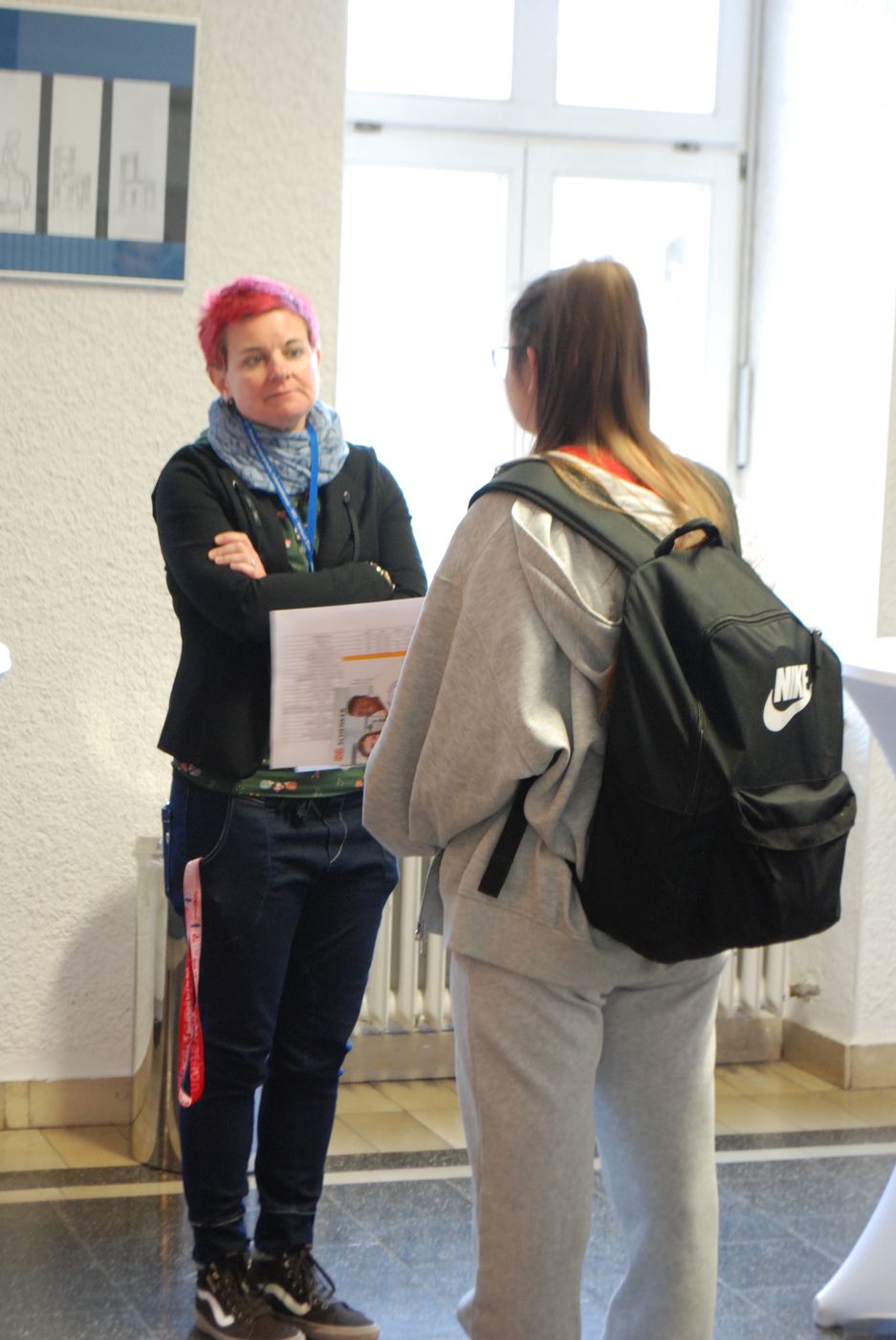 Endlich war es wieder soweit! Am 8. März konnte - nach langer Zwangspause - die Berufsinformationsbörse wieder an unserer Schule stattfinden. 25 lokale Unternehmen und Hochschulen ermöglichten unseren SchülerInnen in ihren Veranstaltungen Einblicke in die Vielfalt der beruflichen Möglichkeiten, die sie nach der Schule erwartet. Eine berufliche Zukunft als Jurist oder eine Führungsposition bei der Polizei? Ein (Duales) Studium oder doch eine kaufmännische Ausbildung? Oder lieber „was mit Technik“? – Für jeden war etwas dabei! So konnten sich gleichsam SchülerInnen, die den mittleren Bildungsabschluss anstreben (wie unsere VABO, die Berufsfachschule Wirtschaft und das BKI), als auch SchülerInnen, die sich auf die Hochschulreife vorbereiten (wie die Jahrgangsstufe 1 und das BKII), bei einer Vorauswahl ihren Interessen entsprechend für die passenden Veranstaltungen entscheiden.